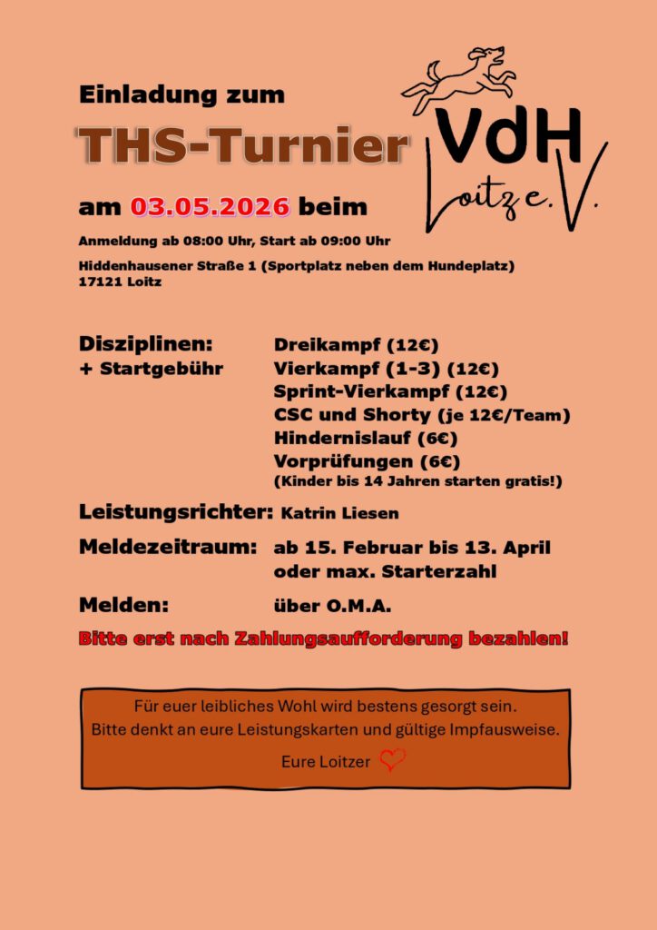 | 26.-28. Juni | großes Agility Turnier (Sportplatz) |